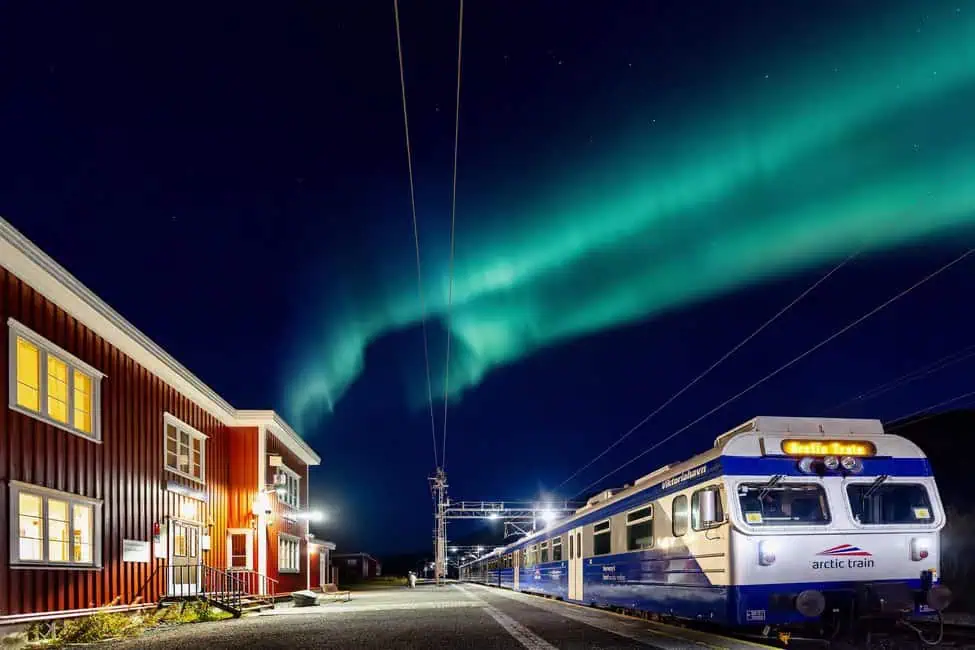 המסע יוצא מנארוויק ועובר דרך אזורים הרריים פראיים, עד לעצירות בתחנות מבודדות כמו ביורנפייל (Bjørnfjell) וקטרט (Katterat). תחנת קטרט, הנמצאת בגובה של כ-373 מטר מעל פני הים, נחשבת לאחת הנקודות האופטימליות לעצירה ולתצפית. כאן יורדים מהרכבת אל הלילה הארקטי, מוקפים בשקט מוחלט, שלג, ורחבי שמיים פתוחים – תנאים אידיאליים לצפייה באורות הצפון.